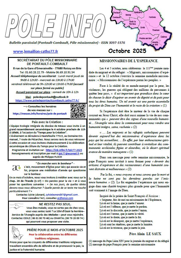 lemaillon-catho77.fr = Site du Pôle Missionnaire Catholique de Pontault – pour les paroisses et églises de Châtres, Favières,