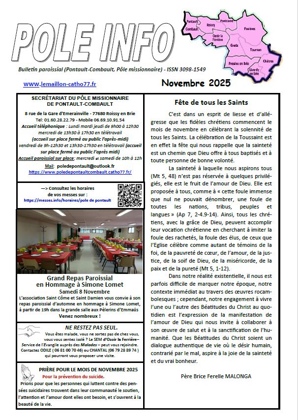Aumônerie du pôle : Gretz-Tournan, Pontault, Roissy-Ozoir-Pontcarré Les premières veillées des aumôneries se sont déroulées dans la joie de se retrouver et de pouvoir faire connaissance, notamment pour les 5èmes nouvellement inscrits, qui sont déjà une vingtaine parmi les 140 jeunes inscrits à l’aumônerie sur le pôle. Novembre sera aussi un mois très actif pour nos […]