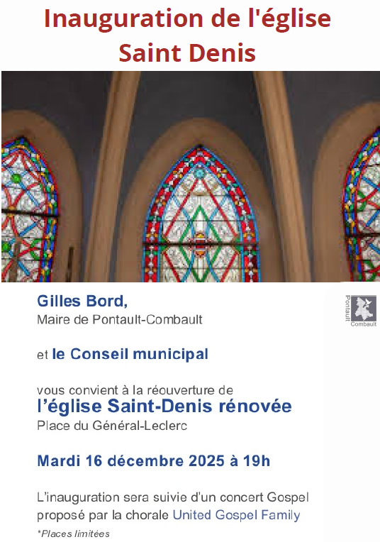 Le maire, M. Gilles BORD et le conseil municipal vous convient à l'inauguration de l’Église Saint Denis rénovée