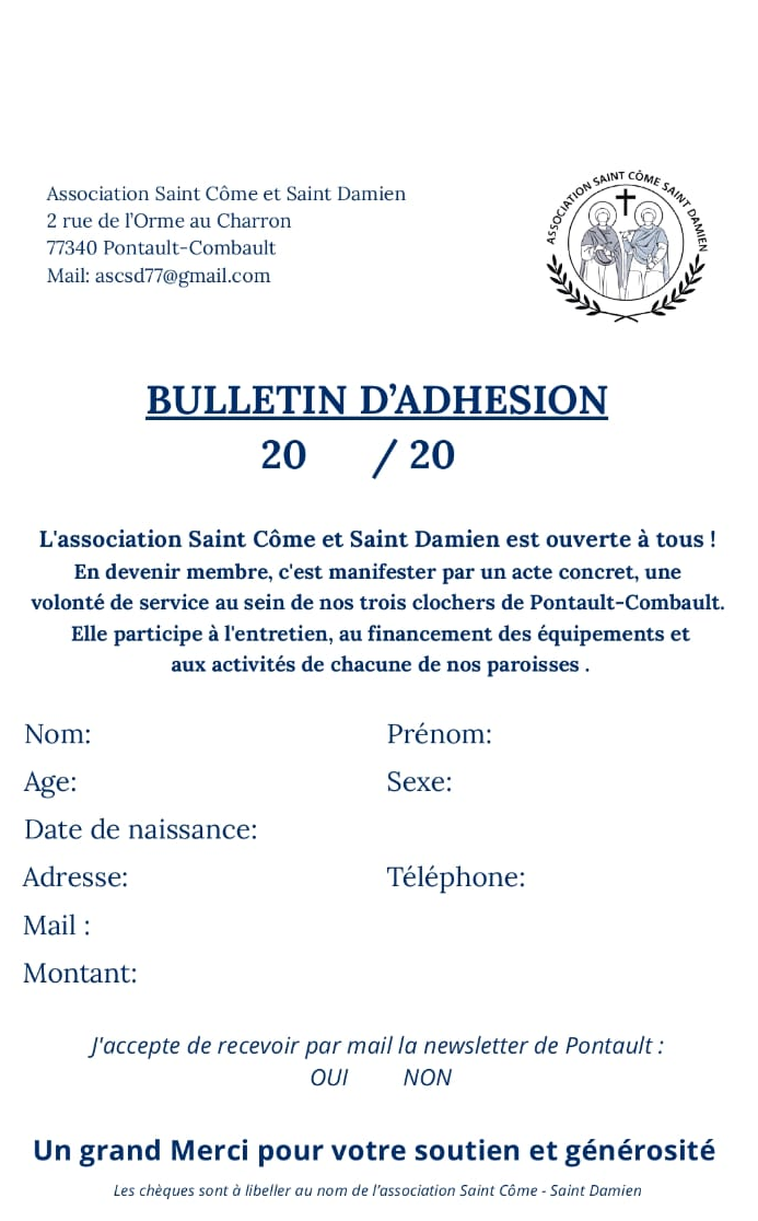 L’association St Côme St Damien de Pontault-Combault, projette de faire un repas paroissial au printemps et