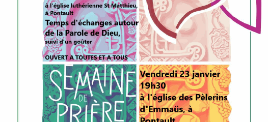 Les jeunes de l’aumônerie vous invitent à vivre des temps forts lors de la semaine pour l’unité des chrétiens : le dimanche 18 janvier, de 15h à 17h, à l’église St Matthieu à Pontault pour échanger autour de la Parole de Dieu et le vendredi 23 janvier à 19h30 aux Pèlerins d’Emmaüs pour prier ensemble … Lire la suite de Semaine de prière pour l’unité des Chrétiens
